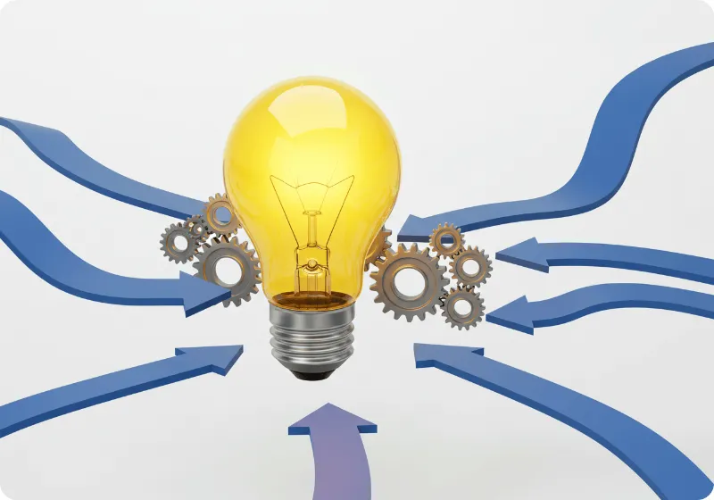 거절 상황에서의 해결책과 전략을 상징하는 전구와 기어