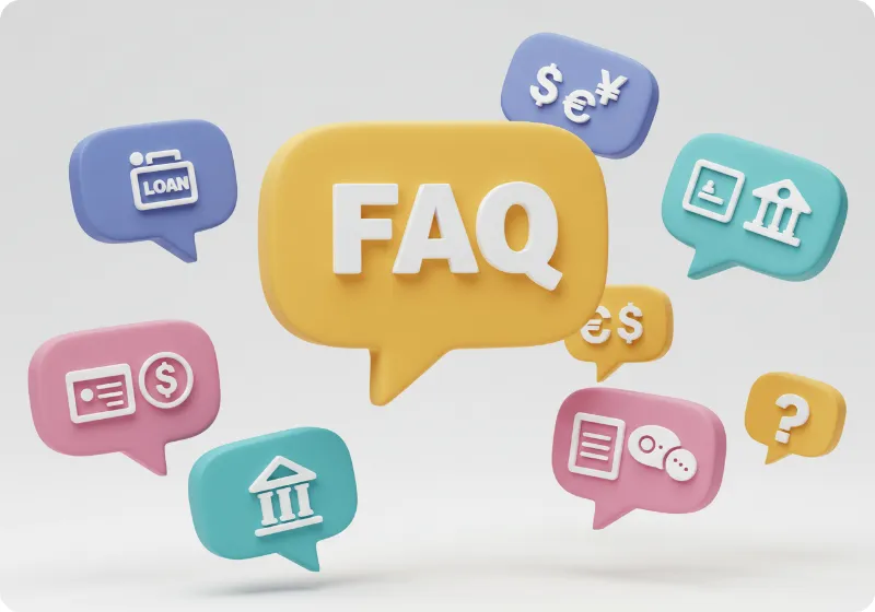 금융 관련 FAQ를 나타내는 질문 말풍선들