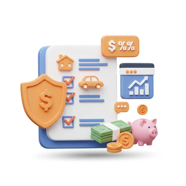 체크리스트와 방패, 도구를 조합해 재무 준비의 중요성을 강조